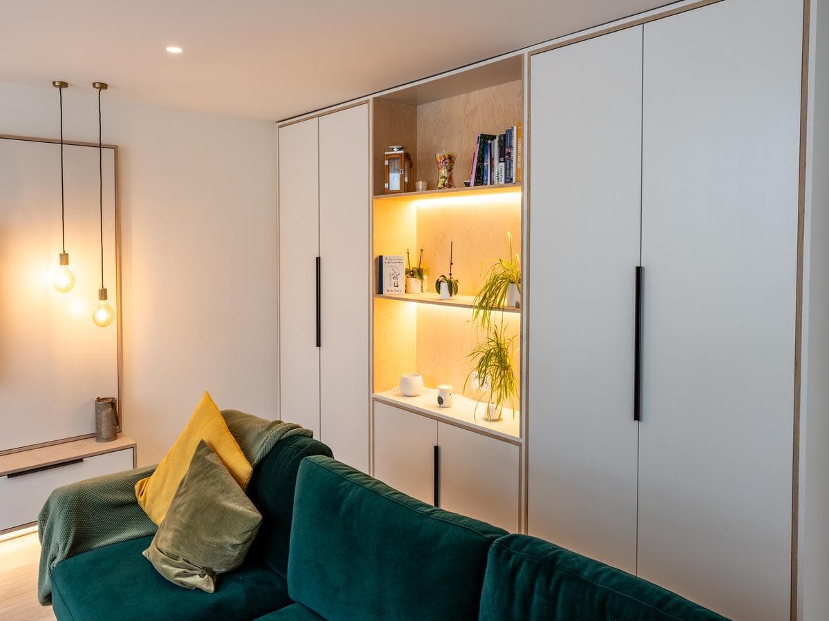 As Pronorm is our exclusive brand for the South Coast, we selected the Y-LINE detail with black milling in the door profile, adding subtle black accents to the kitchen. The doors were finished in Lacquered Arctic White, complementing the wall colour and other interior finishes. Additionally, the doors were edged with an open wood grain to reflect the birch ply element specified in the design brief.