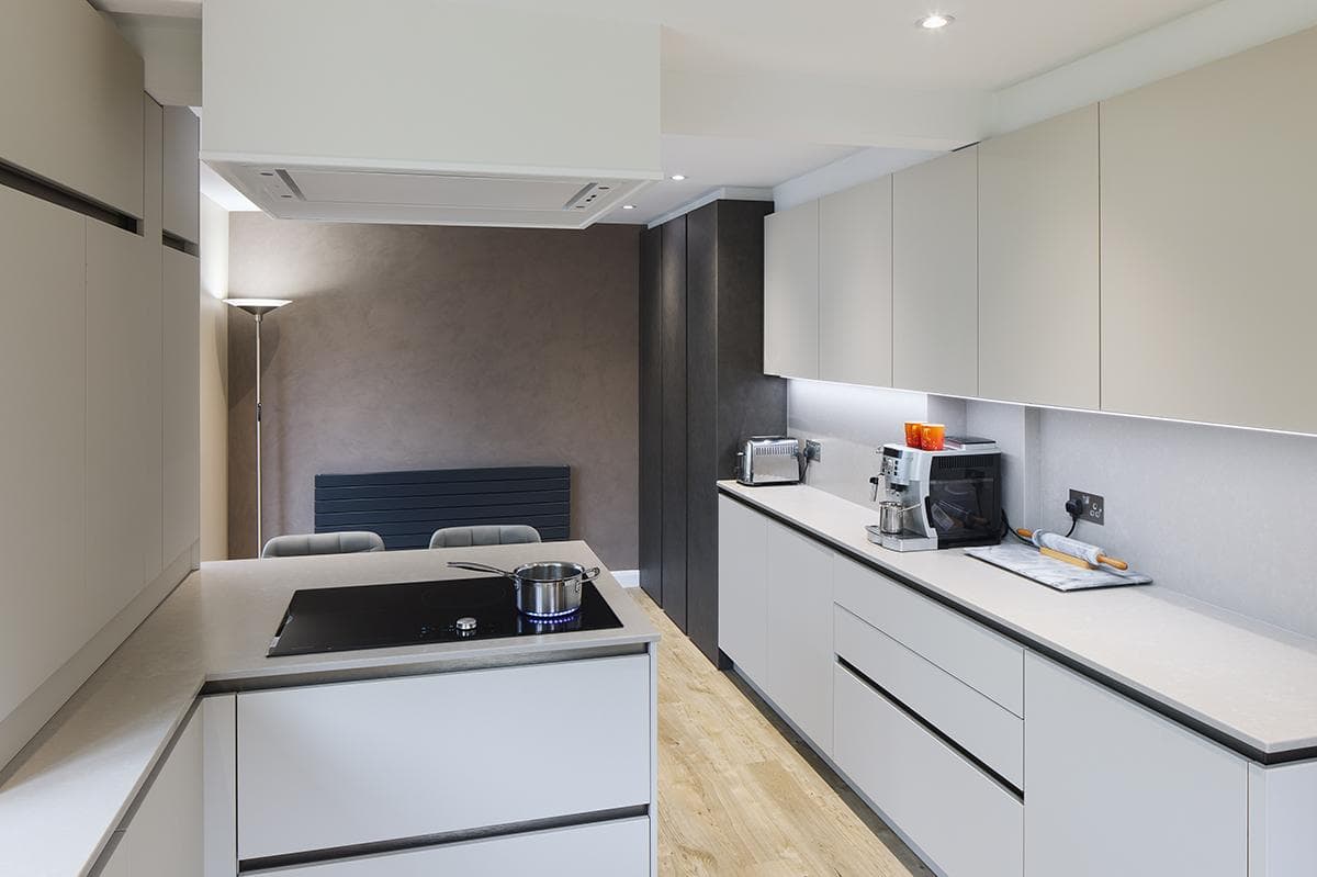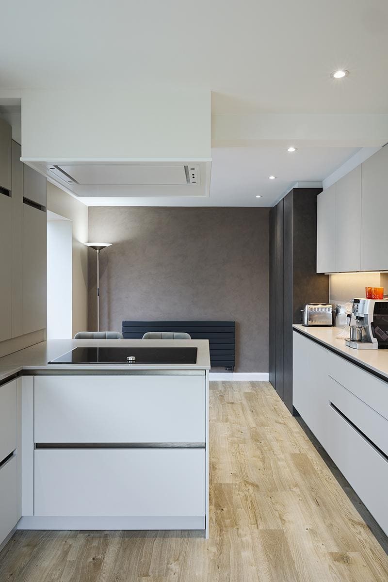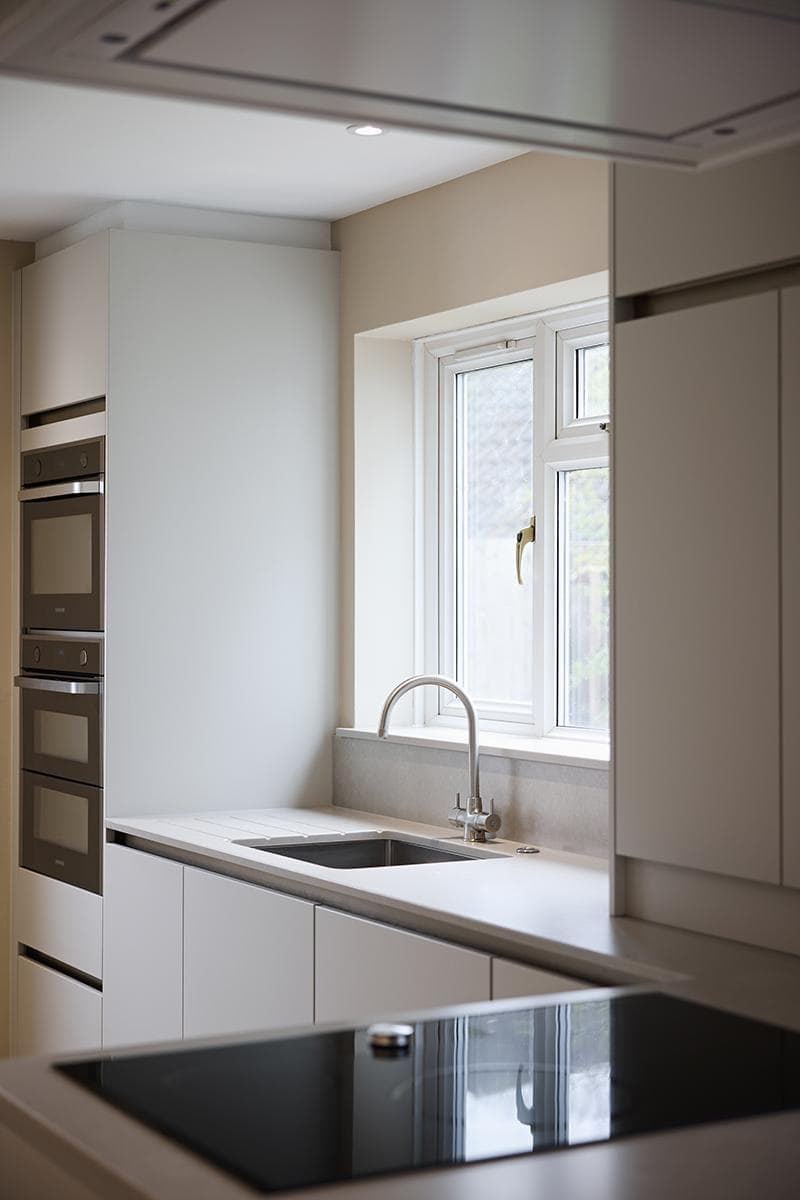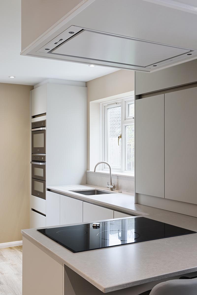 There were many challenges in the kitchen, one being the limited light and the other being a new boiler that was recently fitted. This was positioned between the existing dividing wall that was being removed to allow for the space to open up, different ceiling heights and floor levels didn’t help but these challenges didn’t stop us to complete a beautiful kitchen.