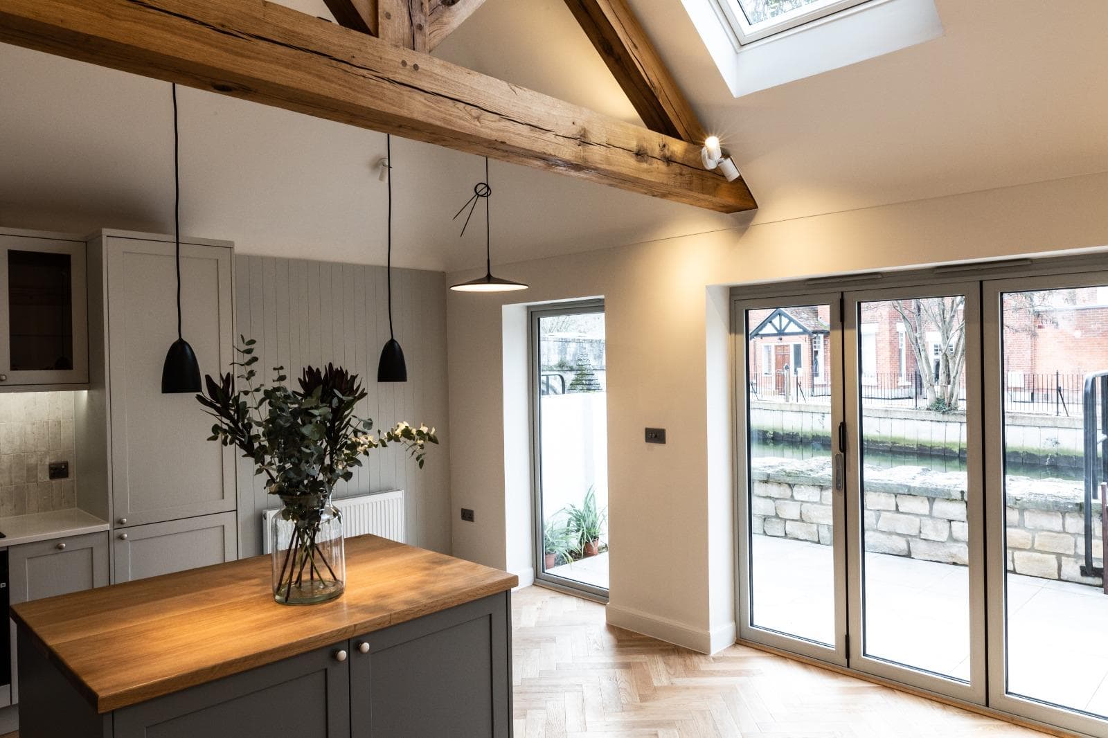 The aim was to create a bright and open kitchen and living room for our client to enjoy the river views of the river Avon and to celebrate the property’s family history.